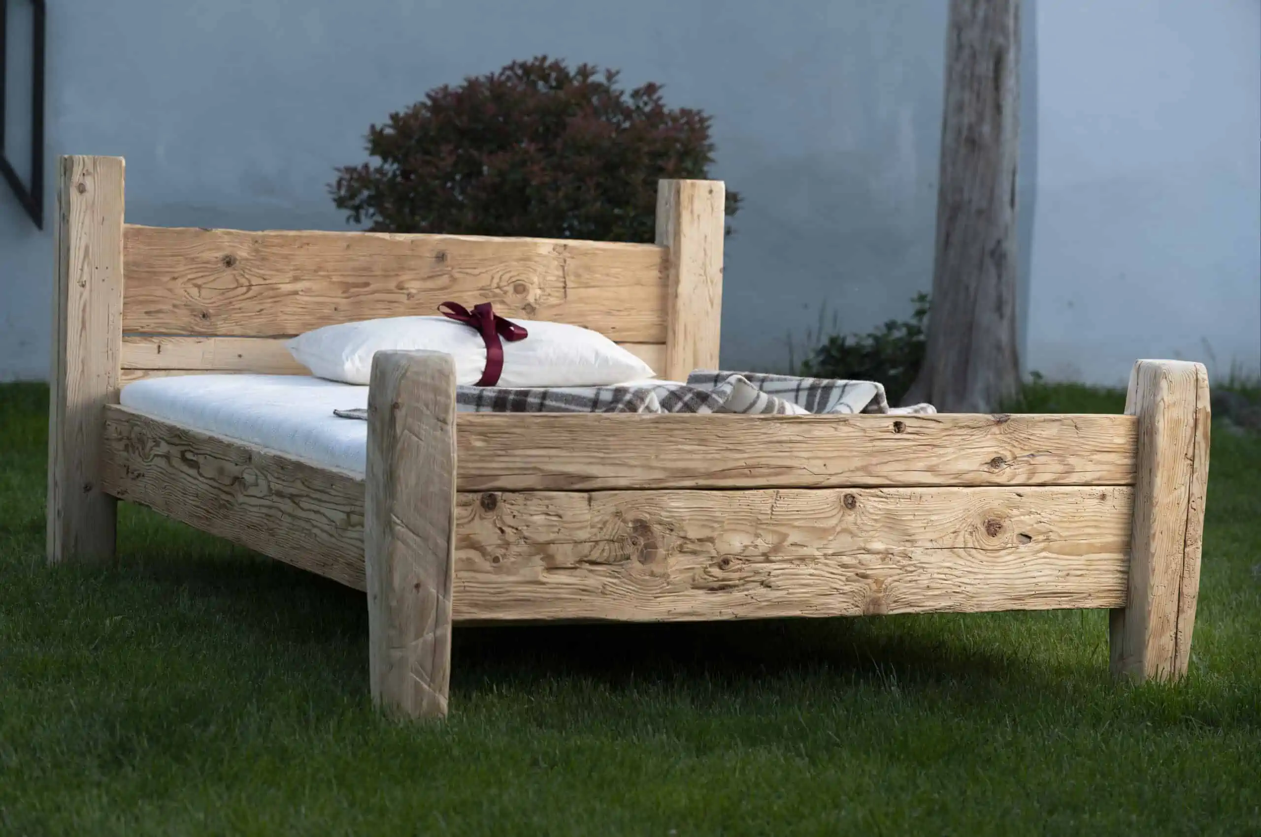 Erhältlich Bett aus Zirbenholz und Altholz in den Standardgrößen: 90x200cm, 140x200cm, 180x200cm, 200x200cm.