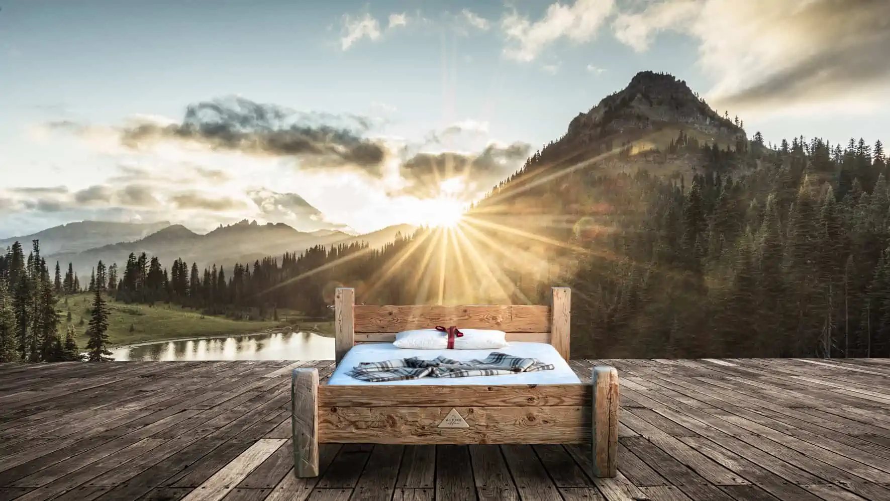 Erlebe die Perfektion traditioneller Handwerkskunst und die Schönheit nachhaltiger Materialien mit unserem Upcycling Zirbenholzbett von ALPINE.affair Modell Chalet.